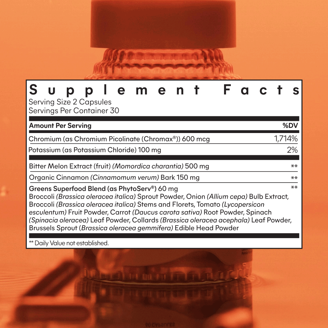 Manage your cravings and support healthy blood sugar levels with clinically-studied Chromium.*