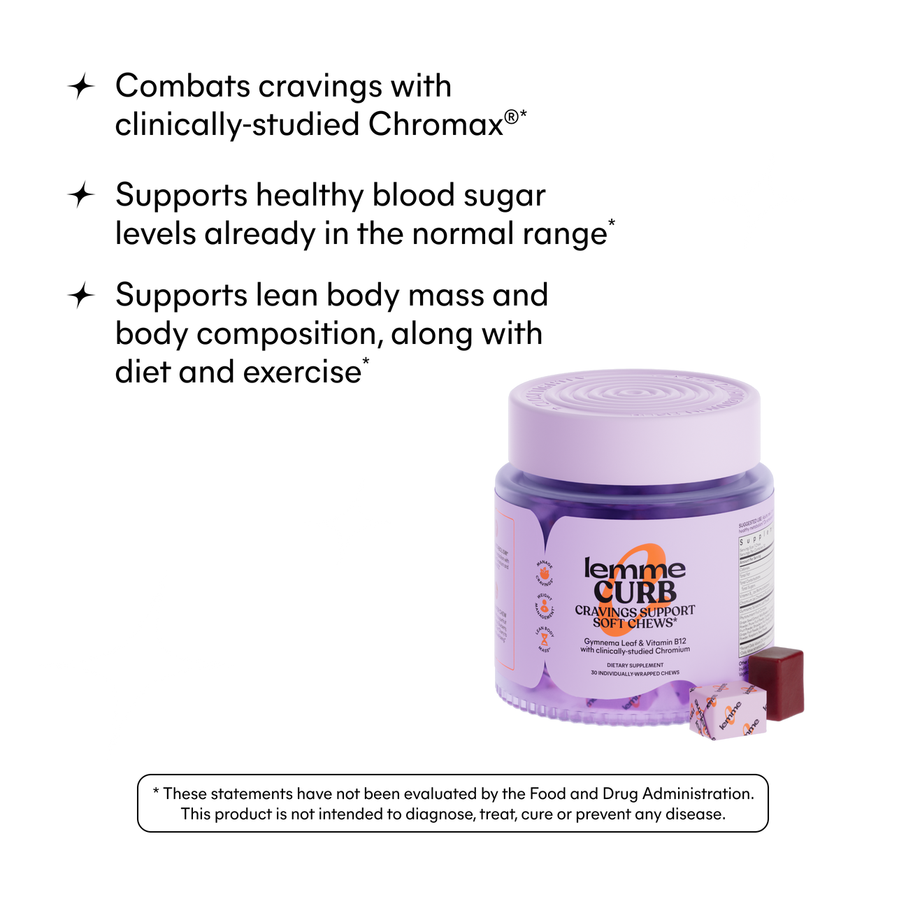 Lemme Curb is formulated with clinically-studied Chromax® Chromium Picolinate, shown in clinical studies to support appetite regulation, healthy metabolism and healthy blood sugar levels already in the normal range.*