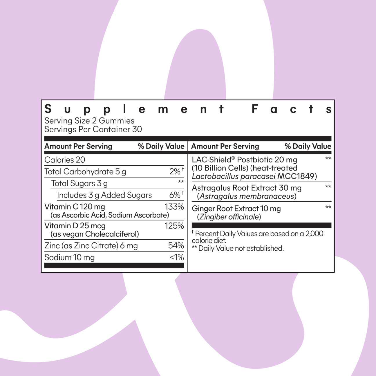 Formulated with Vitamins D3, C, Zinc, Astragalus Root & clinically-studied postbiotics to help:
