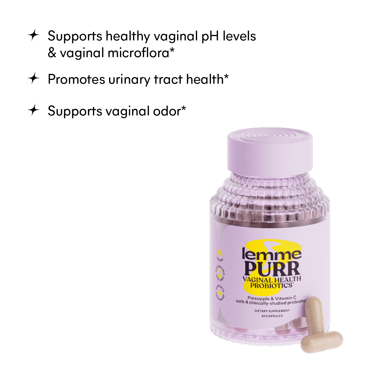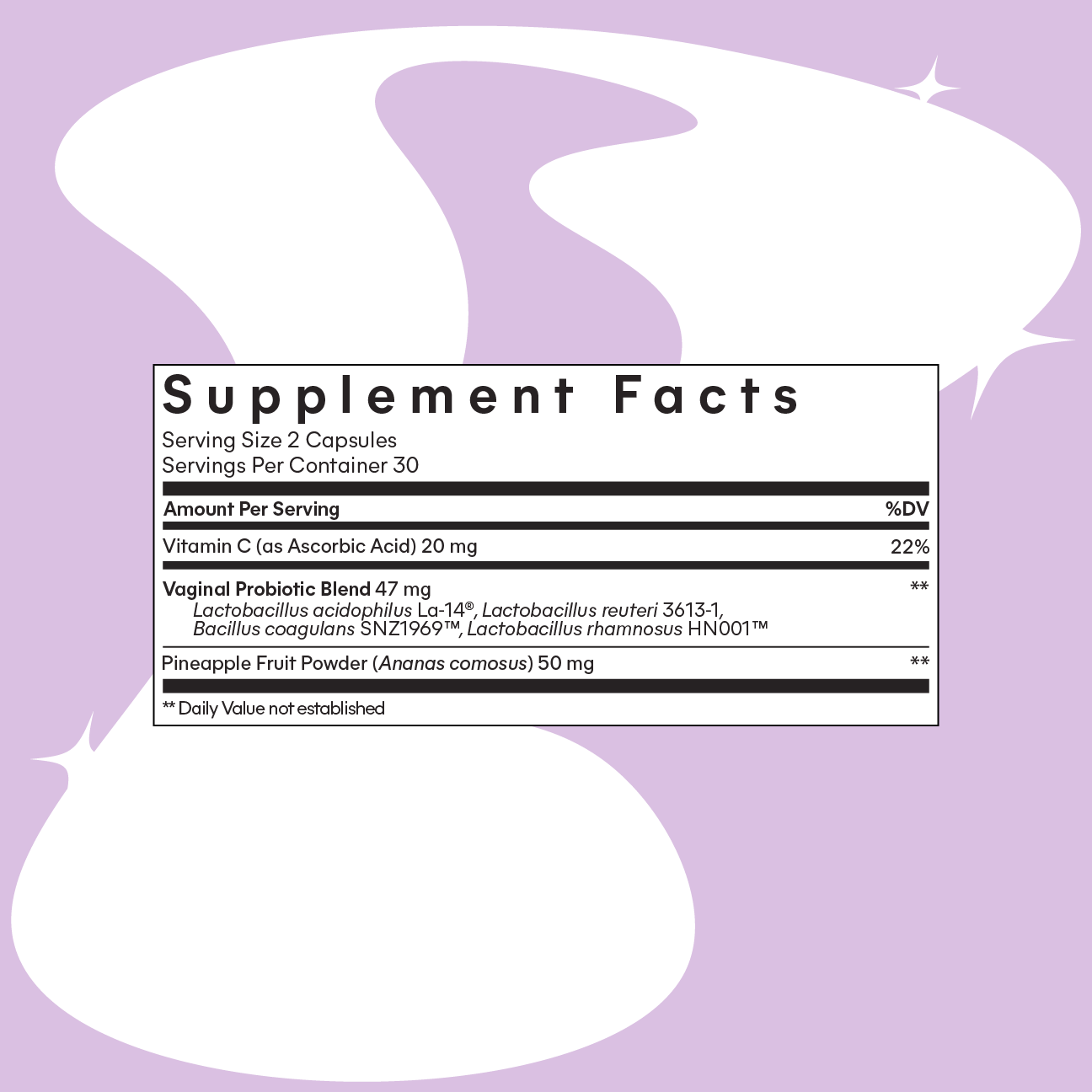 4 clinically-studied vaginal probiotics support pH balance, vaginal health, odor and urinary tract health. Vitamin C supports immune function while Pineapple extract sweetens the deal.*