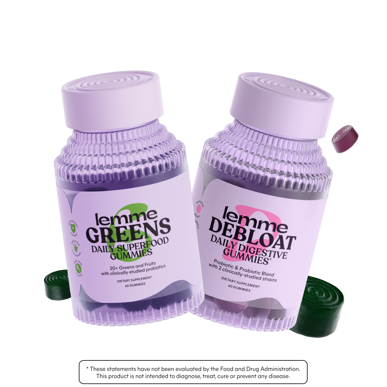 Lemme Greens is formulated with clinically-studied probiotic MTCC 5724, shown to support digestive health, help balance gut flora, and combat bloating.* Additionally, these gummies are made with our Organic Greens Superfood Complex and our Superfruit Antioxidant Support Complex with 20+ fruits and vegetables to support overall wellness from within.*
