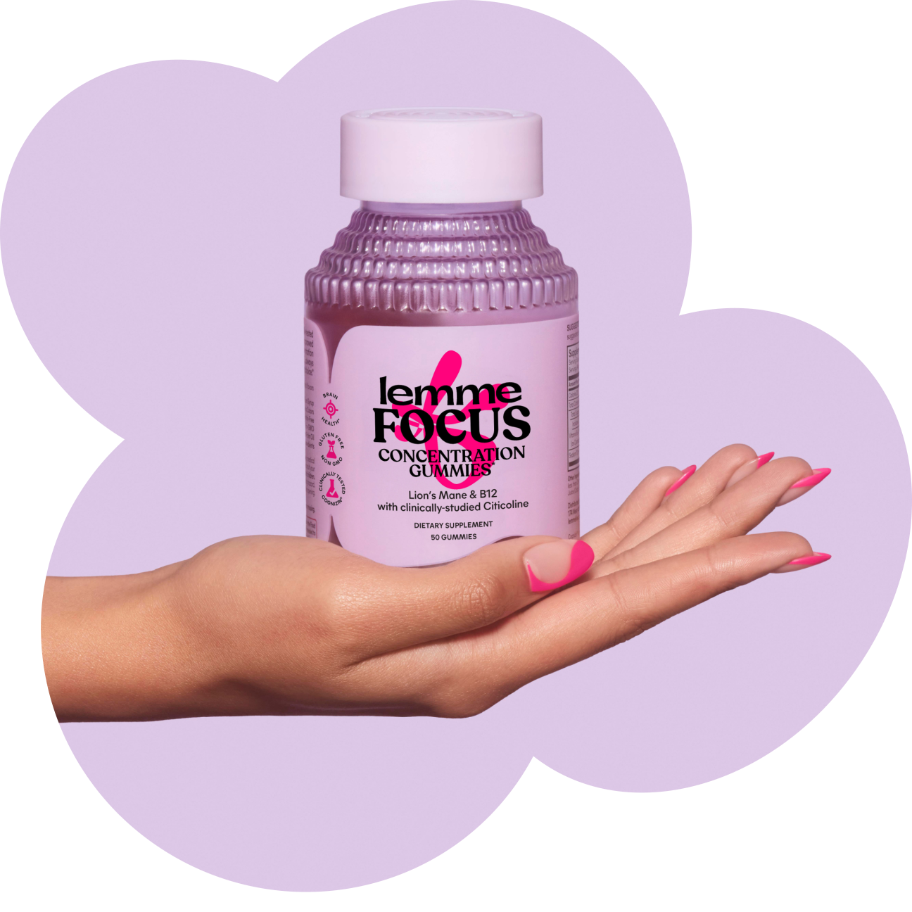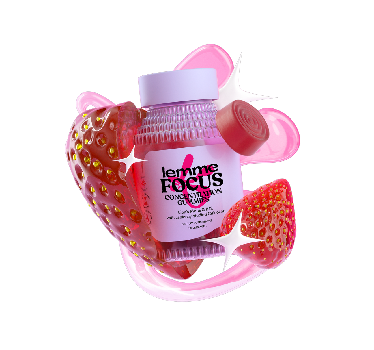 Lemme Focus is formulated with Cognizin® Citicoline, one of the most clinically-studied citicoline ingredients. Cognizin® Citicoline is clinically tested to support focus, concentration and attention. Our focus gummies use a clinical dose of Cognizin® Citicoline. Additionally, Lemme Focus is formulated with Vitamin B12, Organic Lion’s Mane and Organic MCT Oil.*